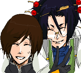 孔明のほうを妖艶な美人に描こうと頑張ったのですが、妖艶な美人すぎて描けませんでした。美人とか美形とかそういう設定が公式で付いているとわたくしの右腕が萎縮してしまって駄目です。ニコ!っていうかこれ似てないだろ(でもアニメでもそうだったからいっか☆)